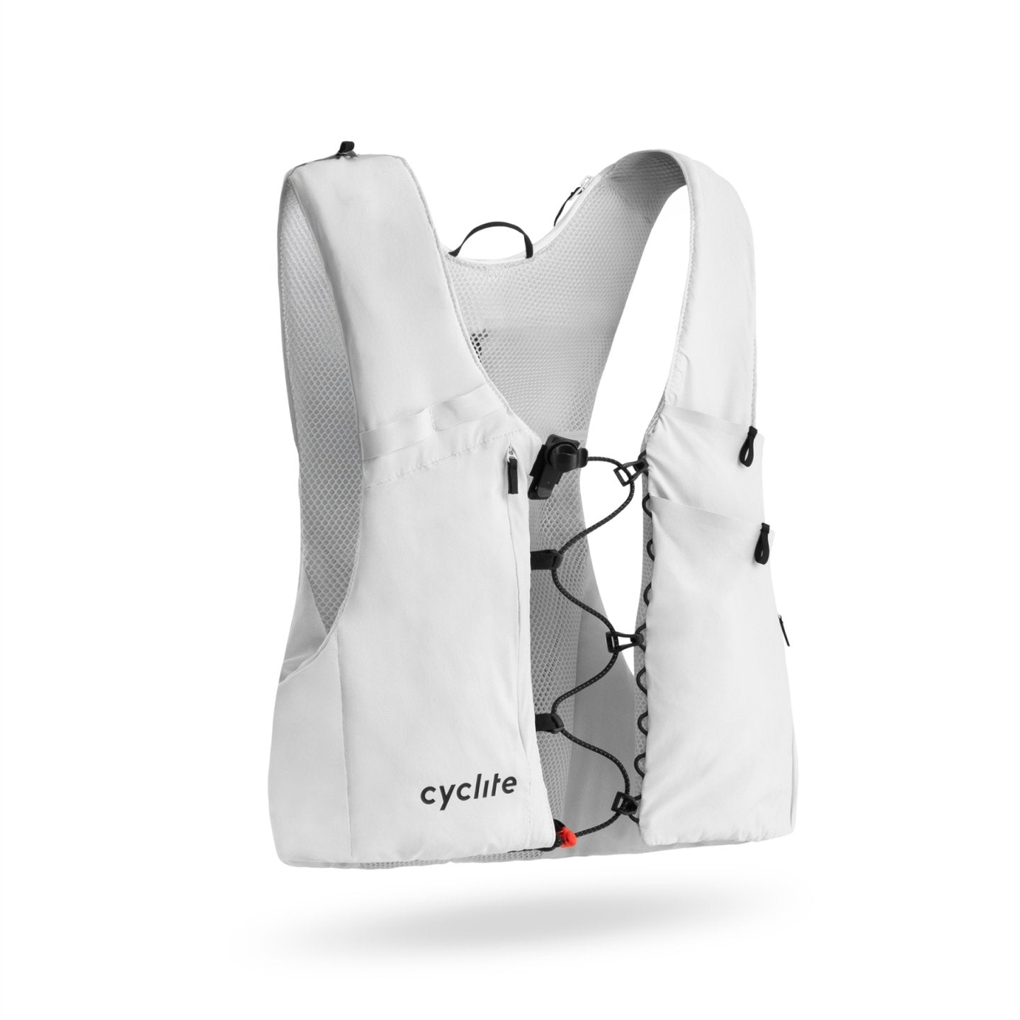 Grundpreis proHYDRATION VEST / 01 ist mit ihrem athletischen Schnitt und dem elastischen 4-Wege-Stretch-Nylon perfekt auf die Ergonomie des Oberkörpers abgestimmt und lässt gleichzeitig den Zugang zur Trikottasche frei. Die anliegende Passform bietet maximale Bewegungsfreiheit, das luftdurchlässige Mesh-Innenmaterial hohe Atmungsaktivität, und dank ihres geringen Eigengewichts von 156 bzw. 176 Gramm ist sie beim Fahren kaum spürbar. Im Hauptfach mit Reißverschlusszugang finden eine 2-Liter-Trinkblase, Jacke und andere Kleinigkeiten Platz. In zwei zusätzlichen Reißverschlusstaschen sind Armlinge oder Windjacke sicher verstaut, während in den drei Schultergurttaschen zum Beispiel Riegel und Smartphone schnell erreichbar bleiben. In der Tasche am linken Schultergurt ist der Inhalt durch einen Reißverschluss gesichert. Der Trinkschlauch wird über einen Magnetmechanismus am rechten Schultergurt im Halbbogen umgelenkt und fixiert – für müheloses Trinken während der Fahrt. Das Brustgurtsystem ist in Höhe und Weite individuell einstellbar. Eine Lampenhalterung auf der Rückseite sowie reflektierende Elemente sorgen für Sichtbarkeit in der Dämmerung und Dunkelheit.